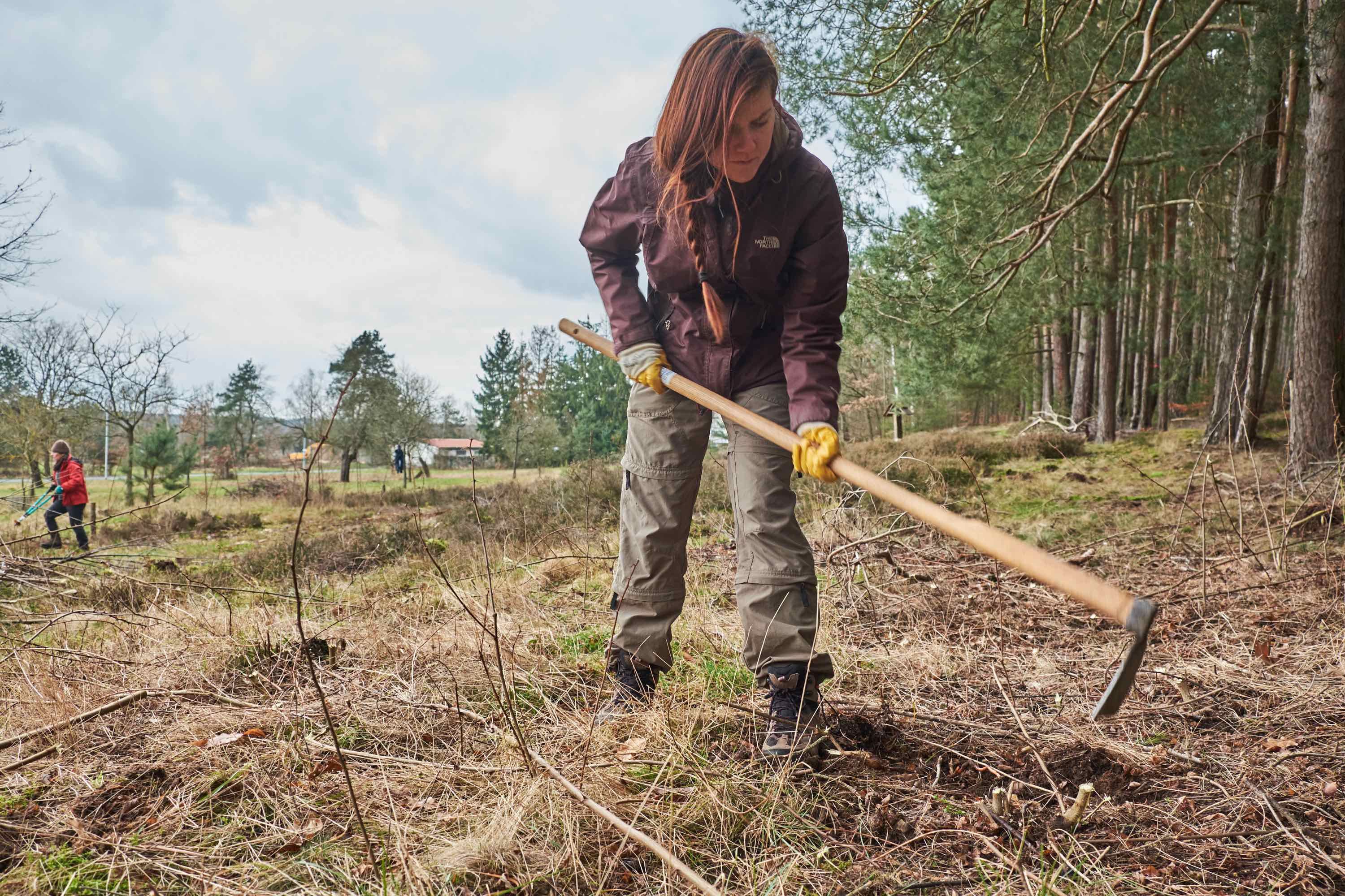 Durch Herausziehen und Abschneiden der jungen Bäume bleibt der offene Charakter erhalten und die Heide wird gefördert. Die überalterten Heidekräuter werden ebenfalls zurückgeschnitten um sie vital und jung zu halten.